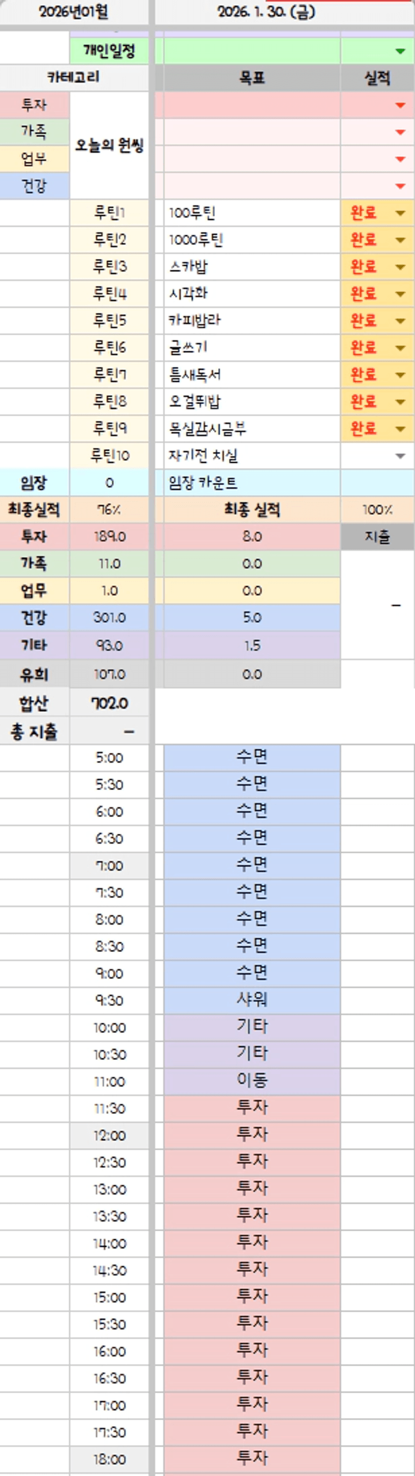 - 이전이라면 쉬었겠지만 부족해도 루틴과 할 일을 한 점