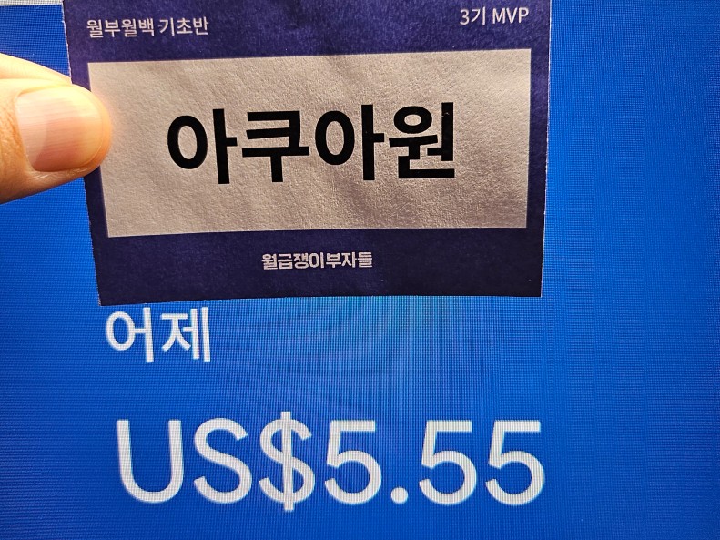 우와아! 아쿠아원님 5.55달러!!축하드려요!!! 후다닥 최고수익 인증보러 왔습니다