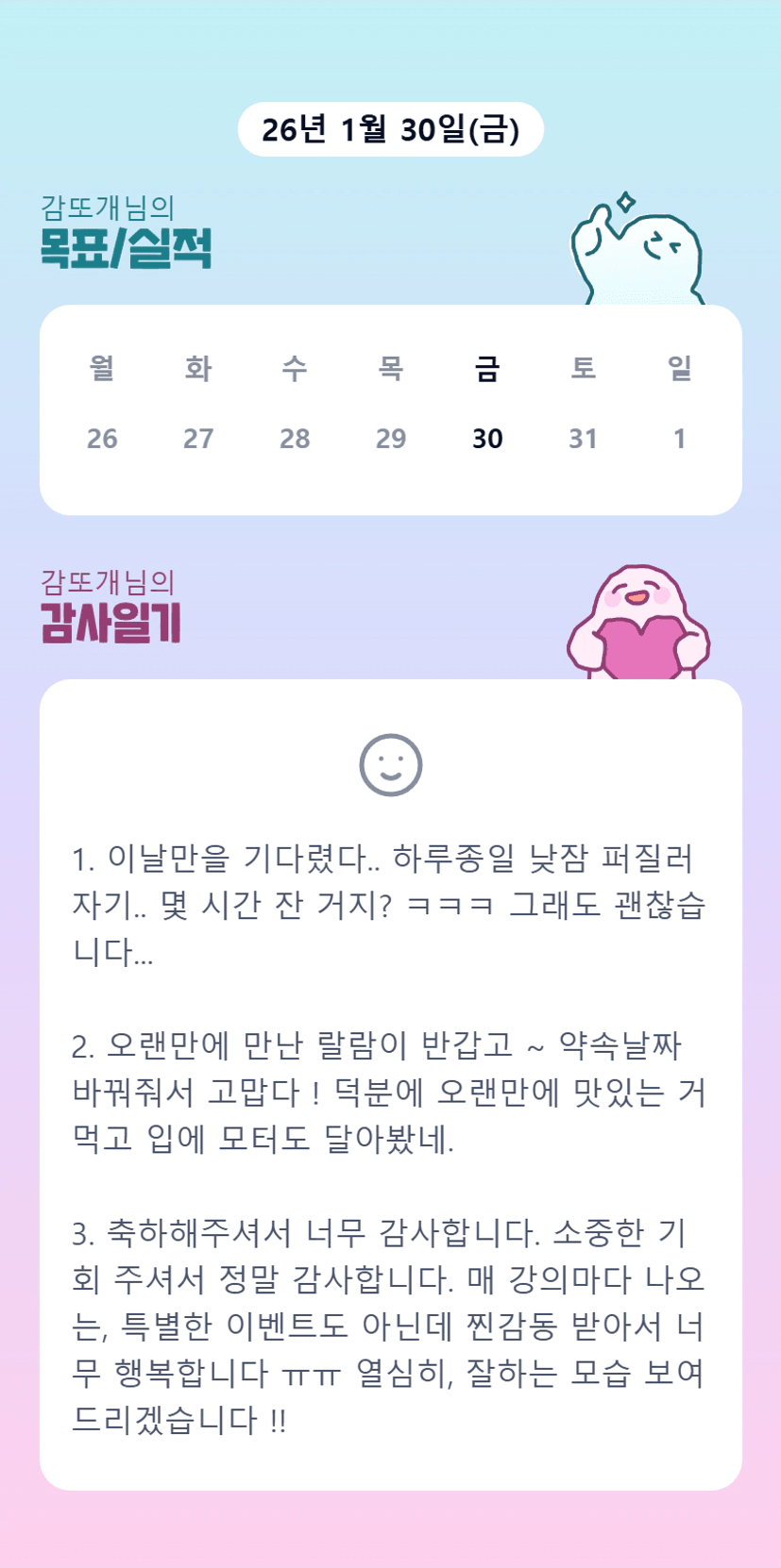 다시한번 또개님의 파이팅넘치는 1월과 mvp 축하드려용ㅎㅎㅎ 고생했다옹~~~
