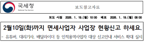 이미 사업장현황신고 안내문을 받아보셨을텐데요.