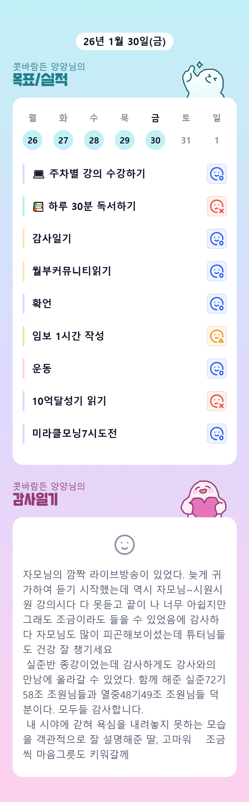 강사와의 만남 날에 또 뵐 수 있겠네요! ㅎㅎ 늘 응원 댓글 달아주셔서 감사합니다! 다음달도 함께 빠이팅하시게요!!!