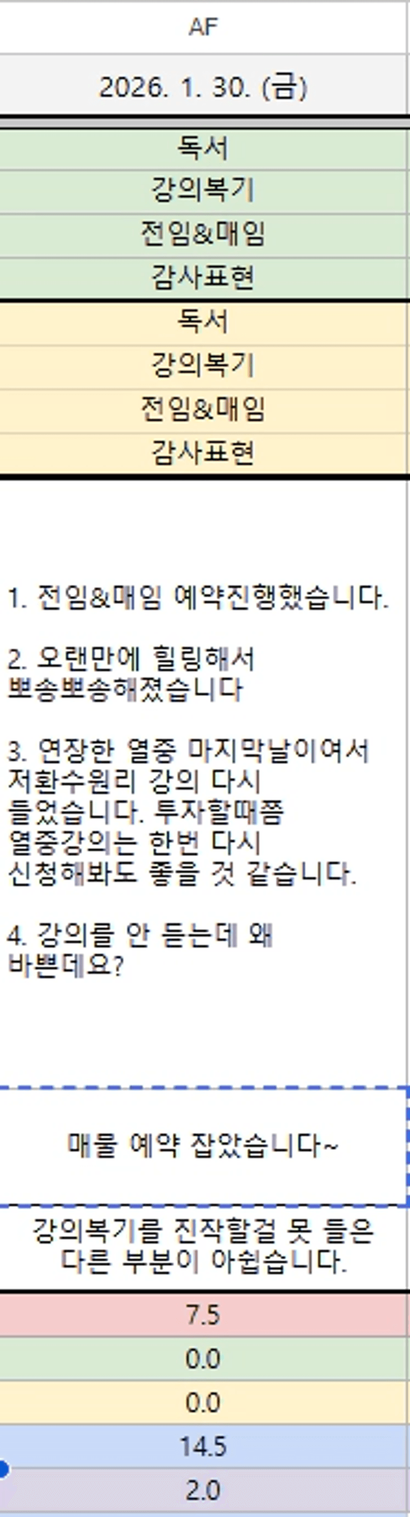 매임 조심히 잘 다녀오시고 2개월 앞마당 1개 화이팅!!! 독서&건강 루틴 넘 멋져요 금희님😊