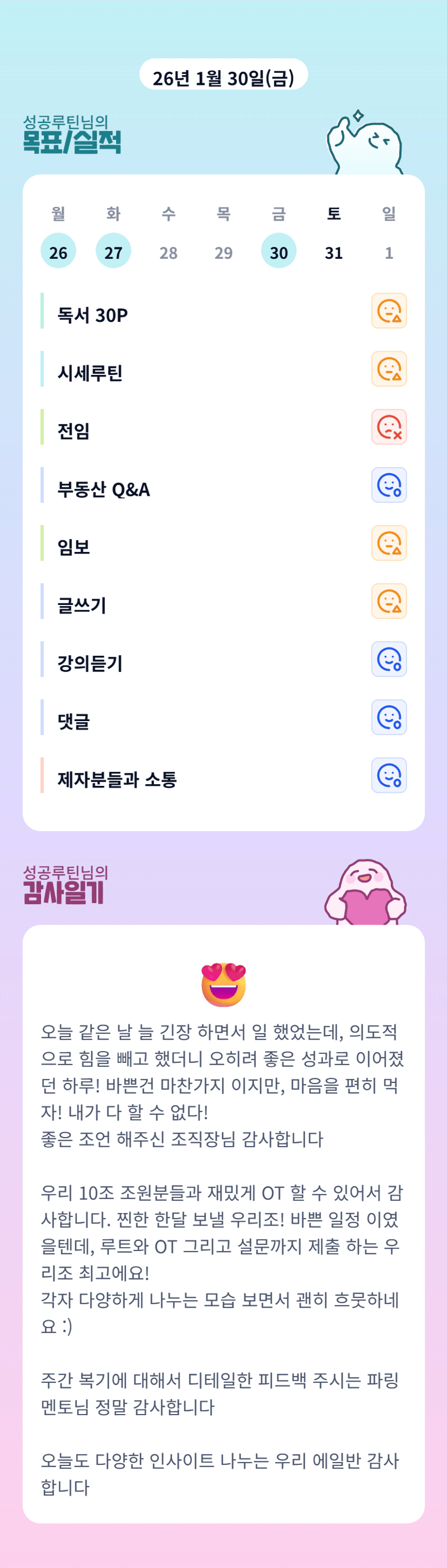 1/30(금) 목실감 [에이스1반 성공루틴]