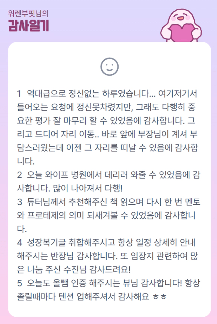 에공공 역대급 하루에 독서랑 성장복기글까지!! 진짜 고생하셧어요 핏부님!