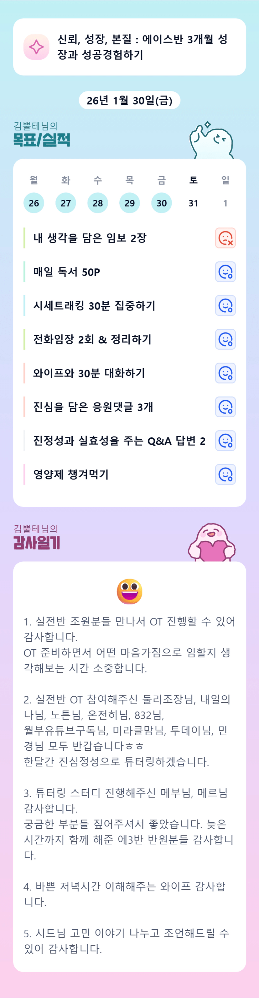 튜터님 어제 오티 해주셔서 감사했습니다^^ 한달 간 열심히 배우겠습니다😻🩷🙏