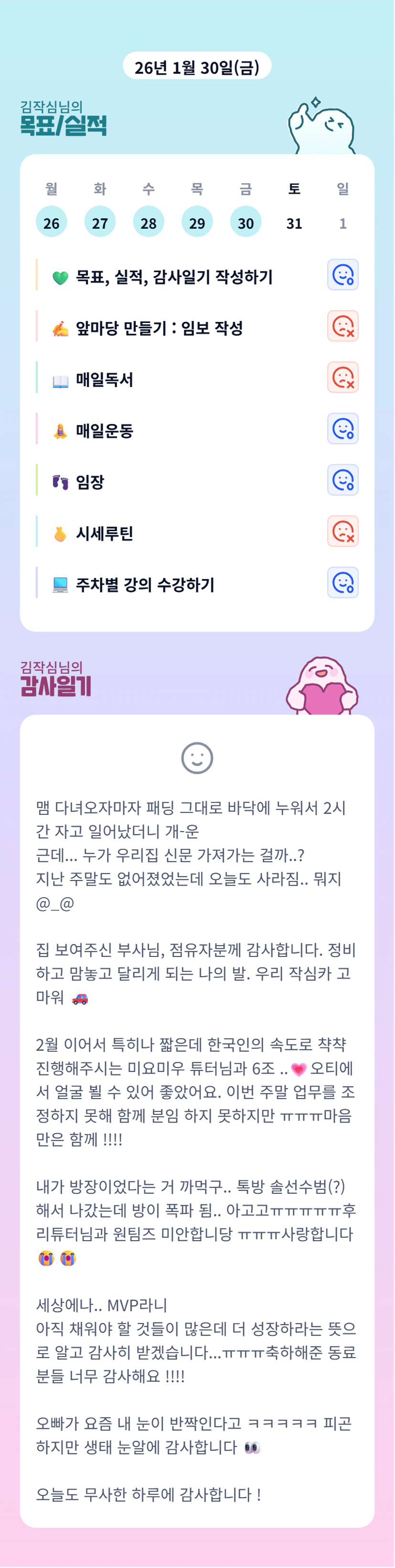 심장님 살앙해. 고생 많으셨고 2월도 빠이팅입니다🩷 방 폭파된게 너무 웃겨요
