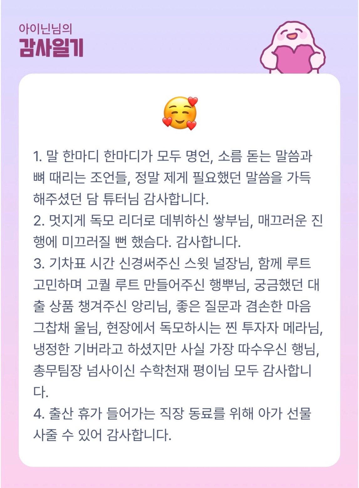 사임 제출 날 울던 내가 학교 첫번째 임보를 발표하며 [아이닌]