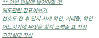 매물도 틈틈히 더 많이 보고 싶었는데 임보가 뒤로 밀리면서 매매가/투자금 별 매임 대상 단지를 빨리 정하지 못했고 원했던 단지를 못본 곳들이 있어 아쉬움이 남는다.