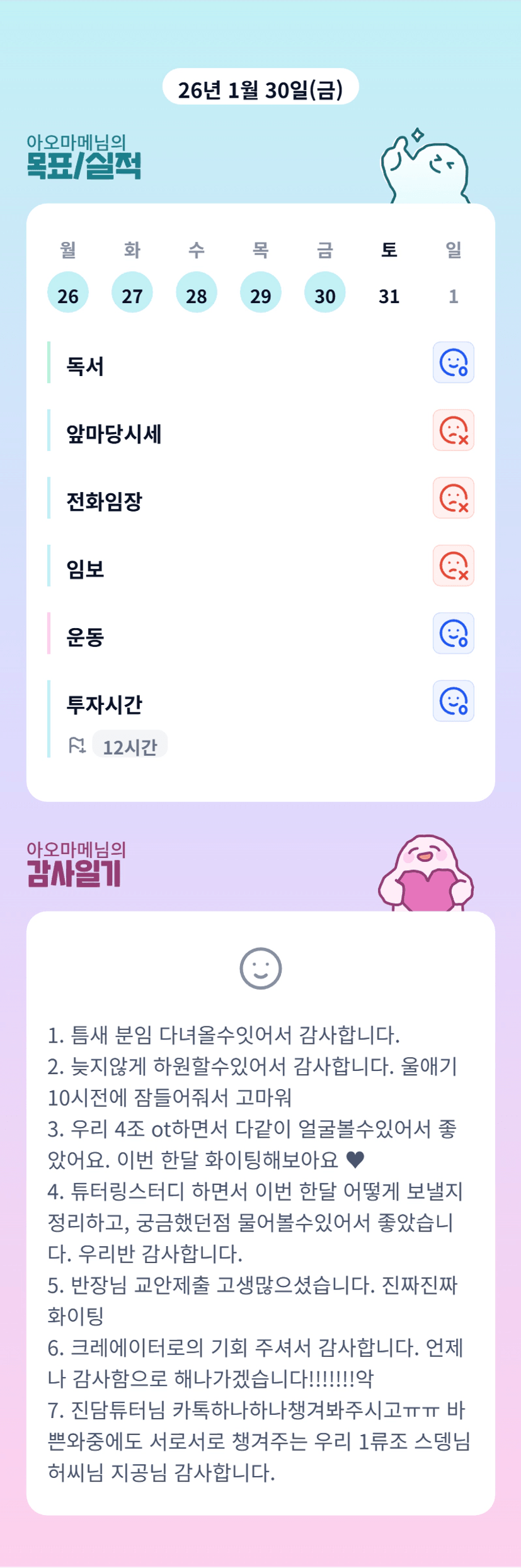 크으 튜터님 크리에이터 축하드려요🎉 한달 정말 감사했어요🩷🩷🩷
