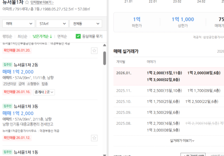 최저가인 3억 4,790만 원은 실거래가 대비 약 1억 5,000만 원가량 저렴한 수준입니다.