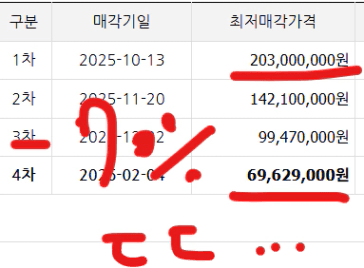 ✔ 감정가 / 최저가: 203,000,000원 / 69,629,000원 (3회 유찰, 34%)