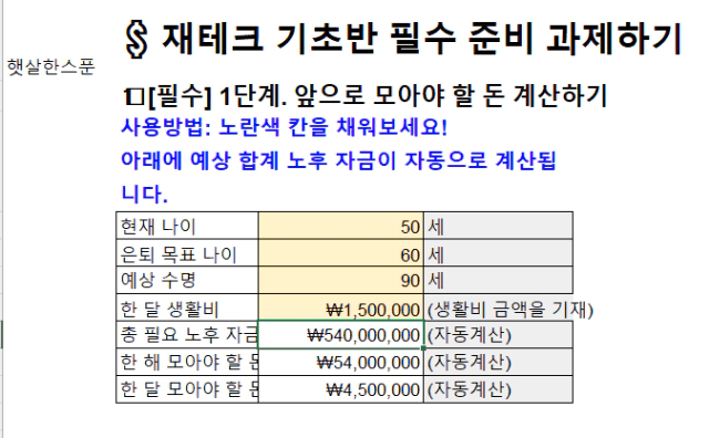 저는 제가 모아둔 노후 금액에서 더 필요한 금액을 기록해 보았습니다