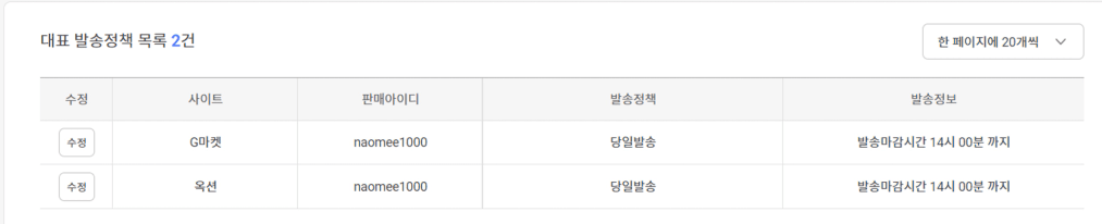 상품등록 환경설정에서 지마켓,옥션의 배송정책번호 관련하여 문의를 드립니다.