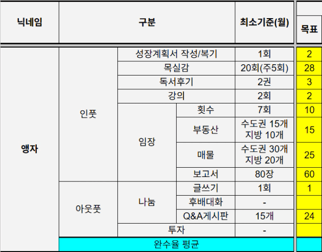 목표 임장 12회 부동산 15개 매물 35개 임보 150장