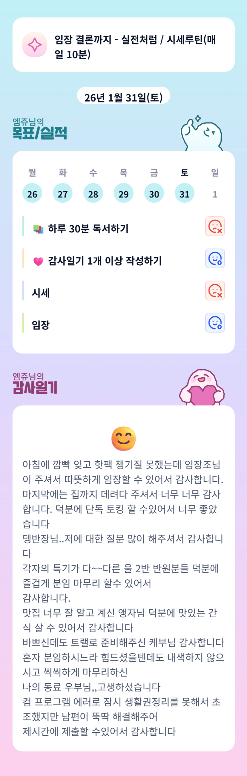 이번주도 고생 많으셨습니당~!! 다음주도 화이팅이예욤😊😊