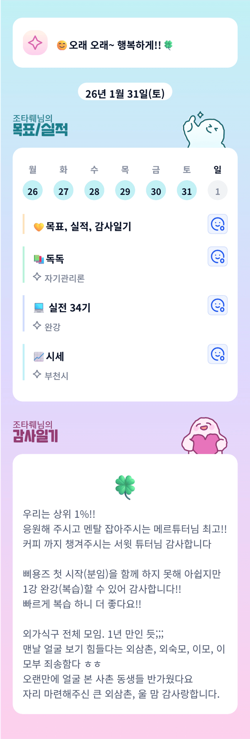 [์กฐํ๋ค ] ์๋ถ 3๊ฐ์์ฐจ ํฌ์์ฝ์นญ ๋ฐ๊ณ ๋ฐฉํฅ์ฑ์ ์ก๋ค!!(์ฑ๊ธํฌ์์, ์ฒญ์ฝ, ์ข ์ฃ๋)