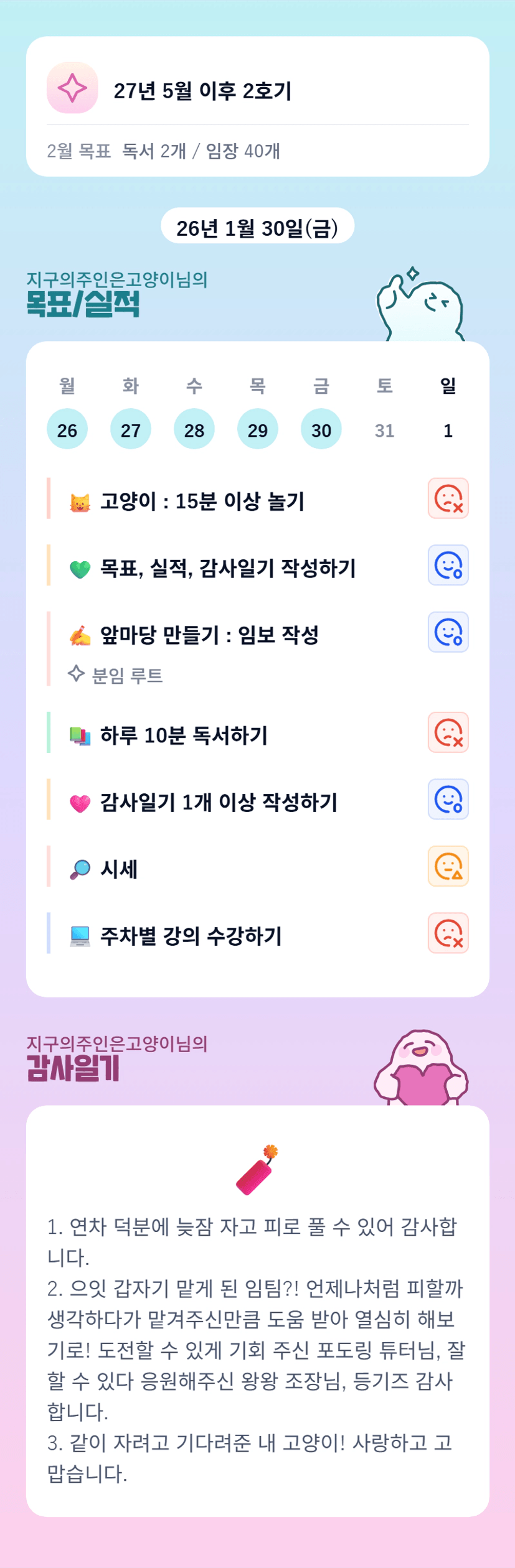 [실전33기 S2쉿! 밍튜님과 오늘부터 1일이조 지구의주인은고양이] 최종임장보고서