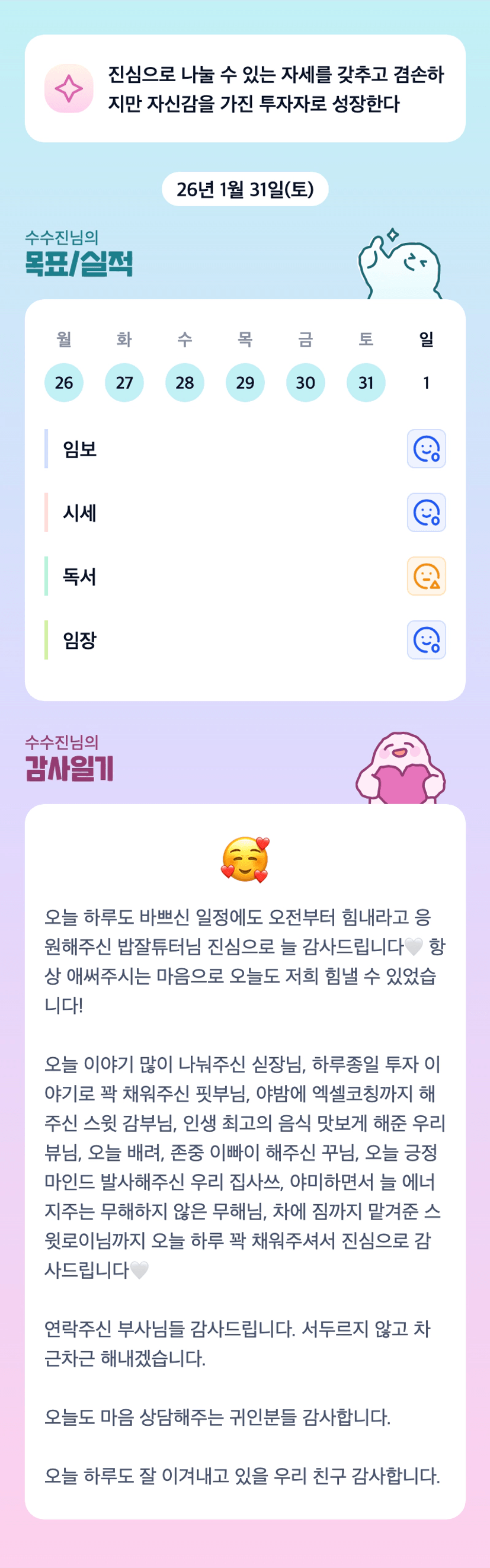 쓔진쓰 오늘도 너무 고생했어요 ㅎㅎㅎ