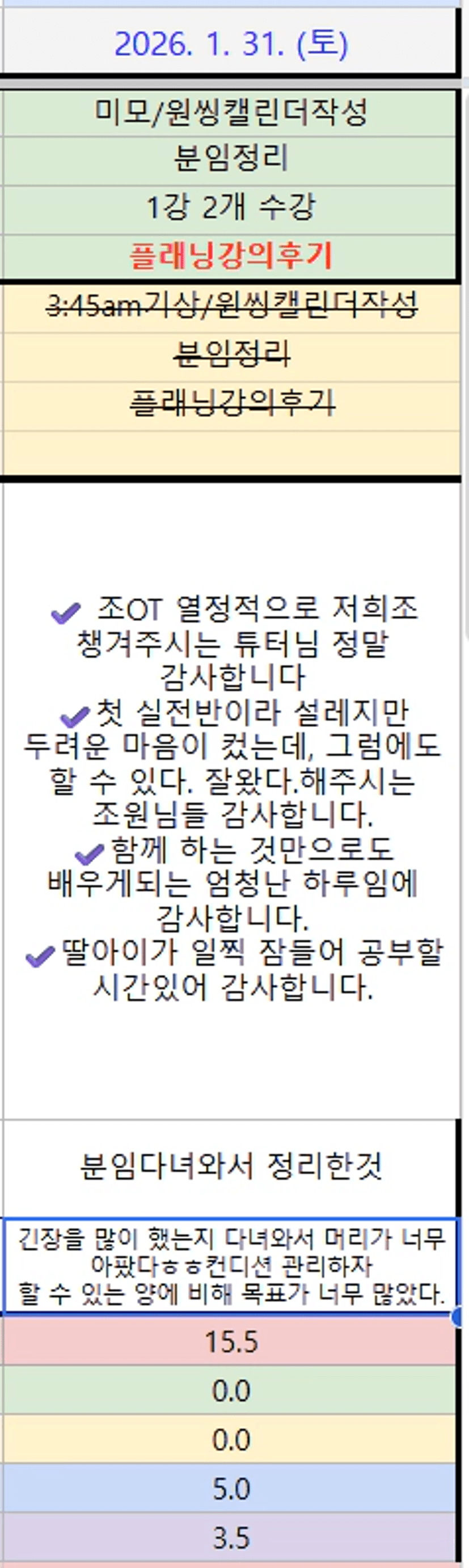 첫 실전반 우리 모두 화이팅입니다 ~