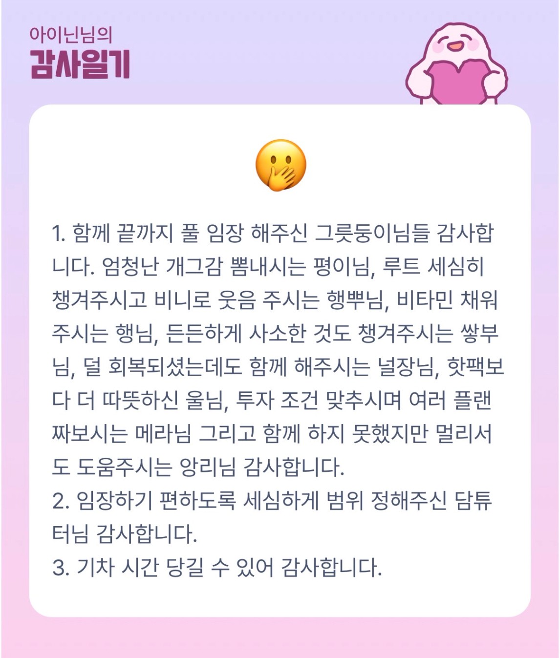 사임 제출 날 울던 내가 학교 첫번째 임보를 발표하며 [아이닌]