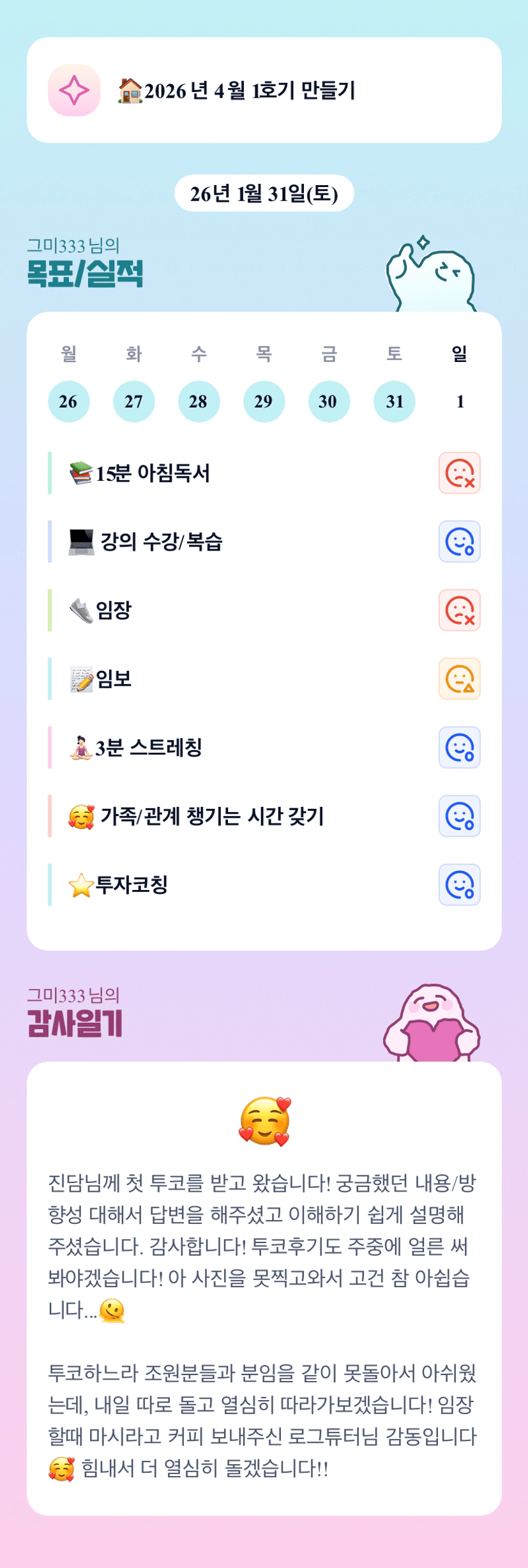 의미있는 시간 되셨다니 더할 나위 없는 하루입니다!!저도 투코 받아봐야겠어요🤭그미님 파이티이잉 오늘이 덜춥대요!해뜨면 안춥고 진짜 따뜻하더라구요💛
