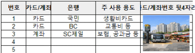 3단계. 자주 쓰는 계좌와 카드 리스트업하기 (최소 2개 ~ 최대 5개까지 진행하기)