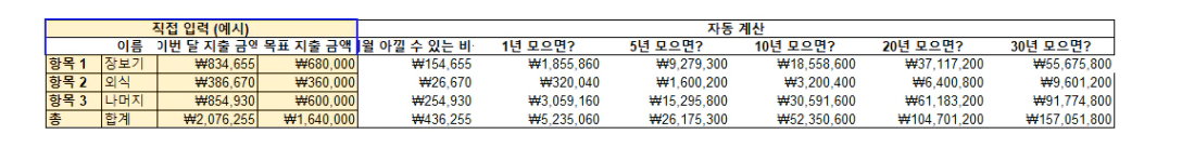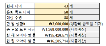 아래에 예상 합계 노후 자금이 자동 계산됩니다.