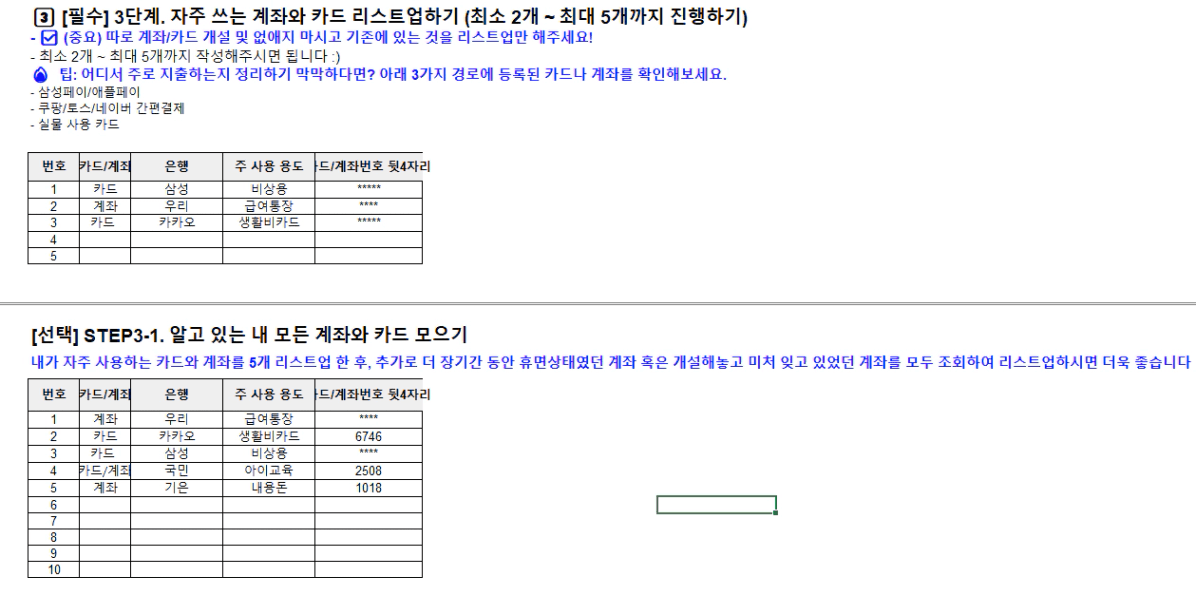 3단계. 자주 쓰는 계좌와 카드 리스트업하기 (최소 2개 ~ 최대 5개까지 진행하기)