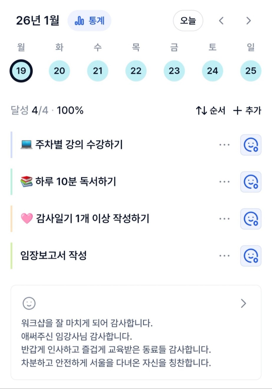 목실감 기록을 생활화 하도록 노력해야겠다.