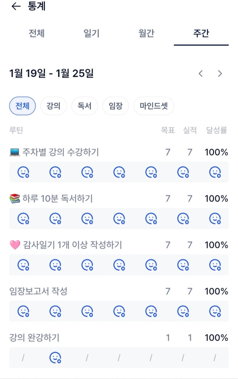 1️⃣ 목실감 - 통계 - 주간으로 들어가 이번주 나의 목실감 현황을 인증해주세요 ! :)