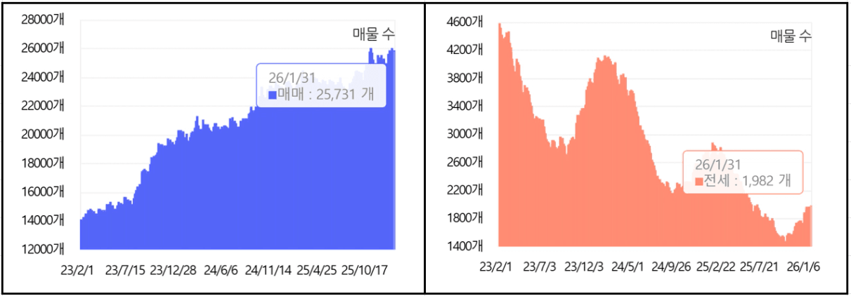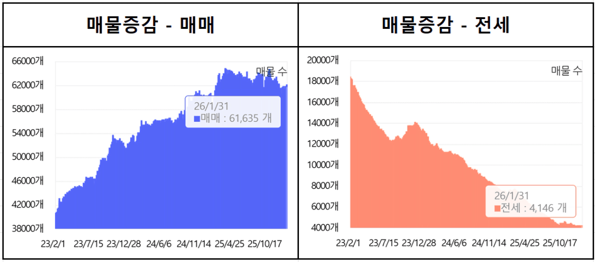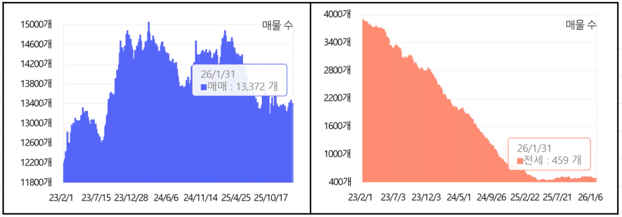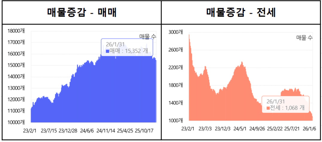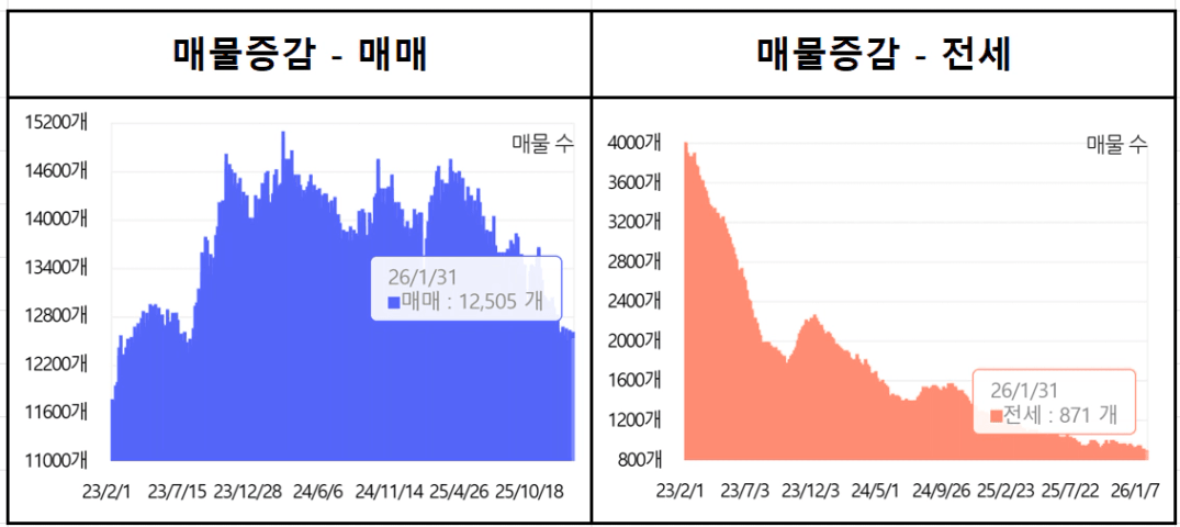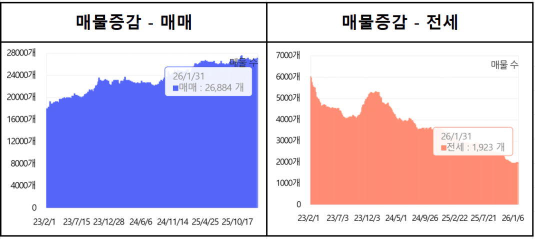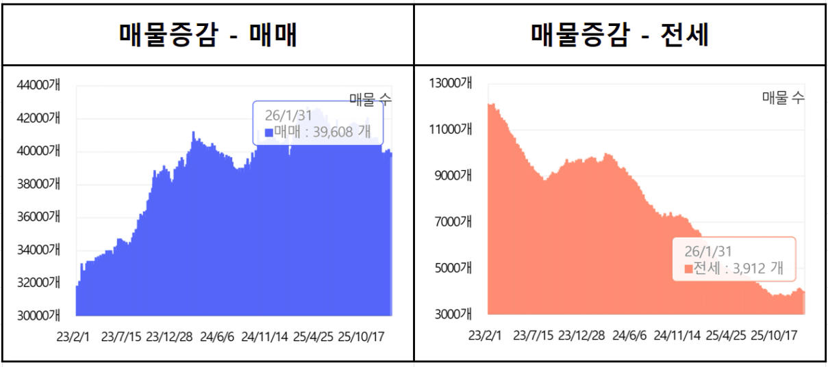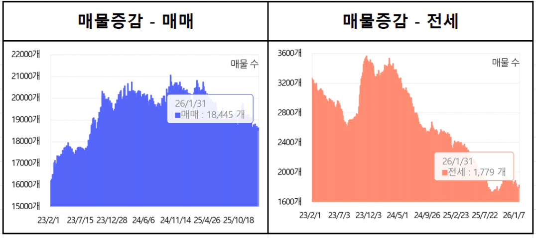 매매는 살짝 감소했고 전세는 보합중입니다.