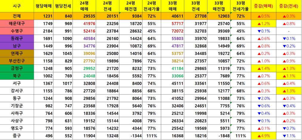 매매, 전세 둘 다 크게 차이가 없습니다.