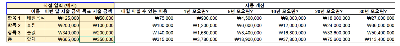 A. 매월 아낄 수 있는 비용 = 이번 달 지출 금액 - 목표 지출 금액