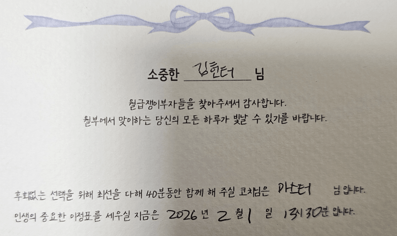 마스터님께 투자 코칭을 받을 수 있게 되었습니다.
