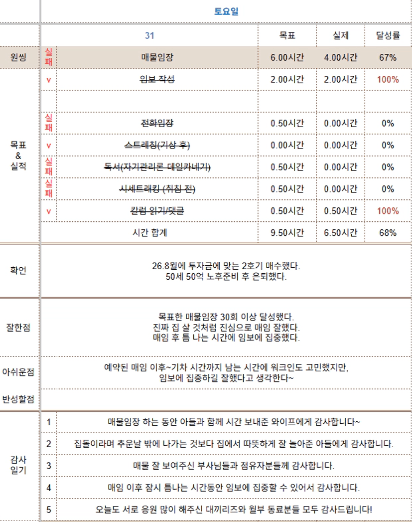 내적친밀감 원과장님! 한달동안 너무너무 고생 많으셨습니다! ㅎ 올해 8월안으로 꼭 2호기 투자하시길 응원드릴게요!! 다음달도 화이팅입니닷!^^