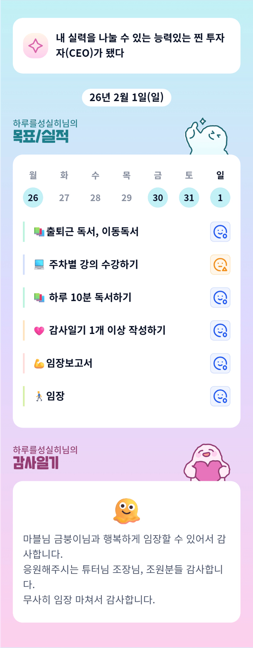 하루님 한주동안 고생 많으셨습니다😊