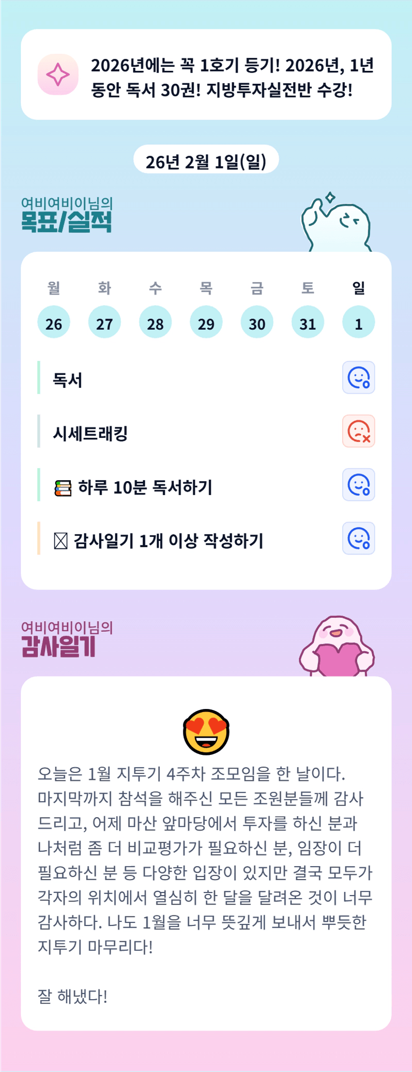여비님 지투기 조장님으로 한 달 동안 고생하셨습니다. ^^