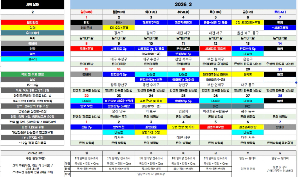□ 2월 계획 및 원씽캘린더