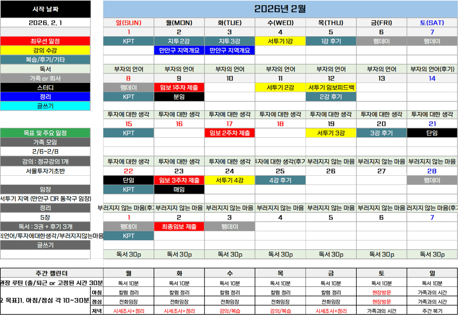 2월 목표 : 루틴에 집중하기(독서/전임/시세/임보 작성)