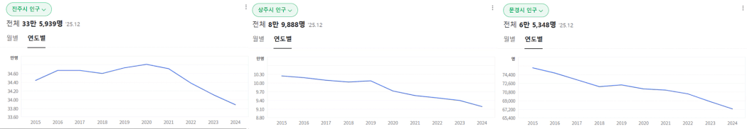 진주 (33만 명) / 상주 (8만 명) / 문경 (6만 명)