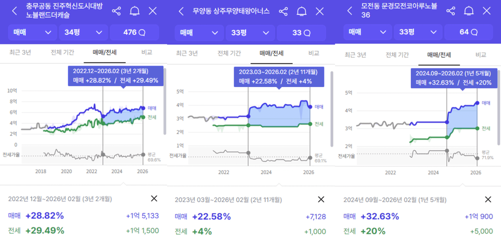 인구 6만 도시의 아파트도 1년 간 1억이 올랐습니다.