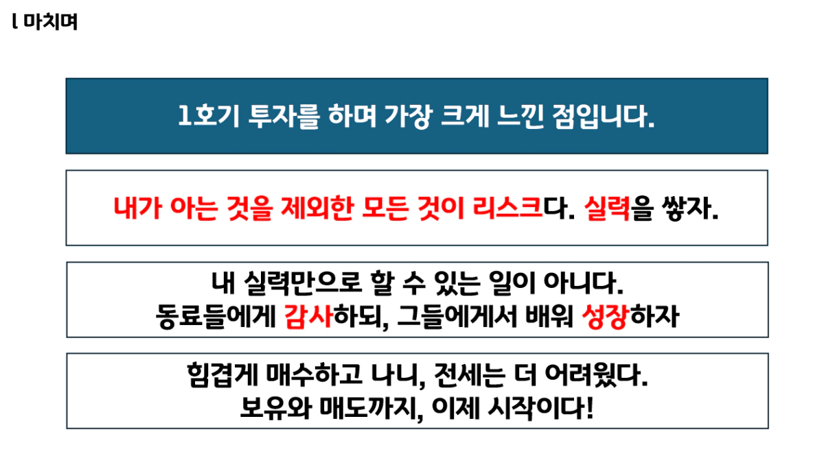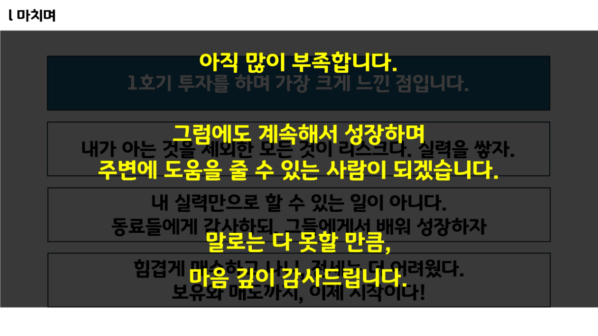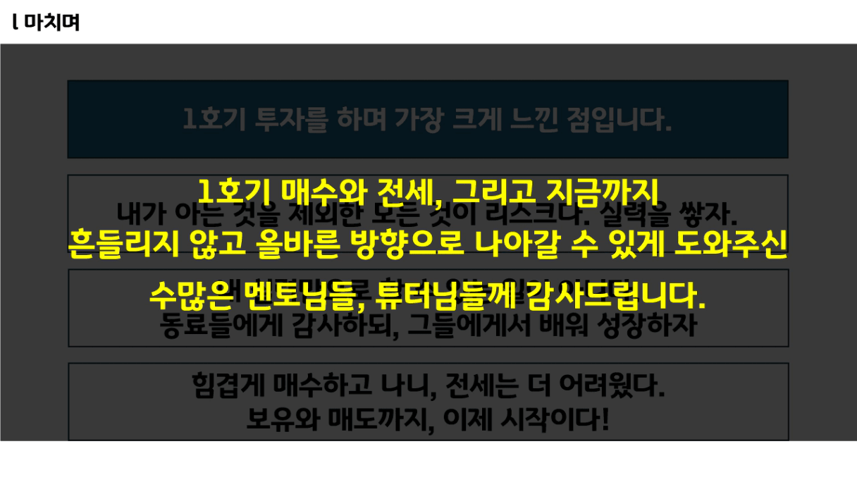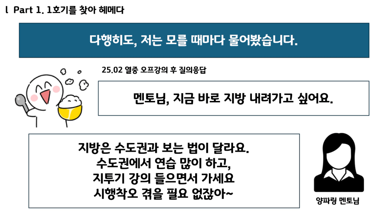 지투 최종 오프모임, 감사하게도 운조 튜터님께서 1호기 경험담을 발표할 기회를 주셨습니다.