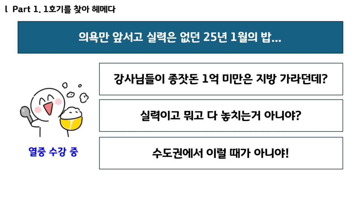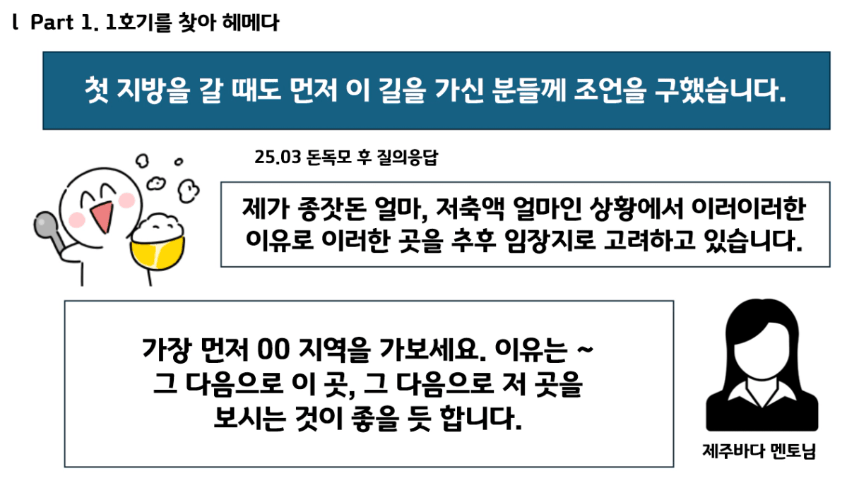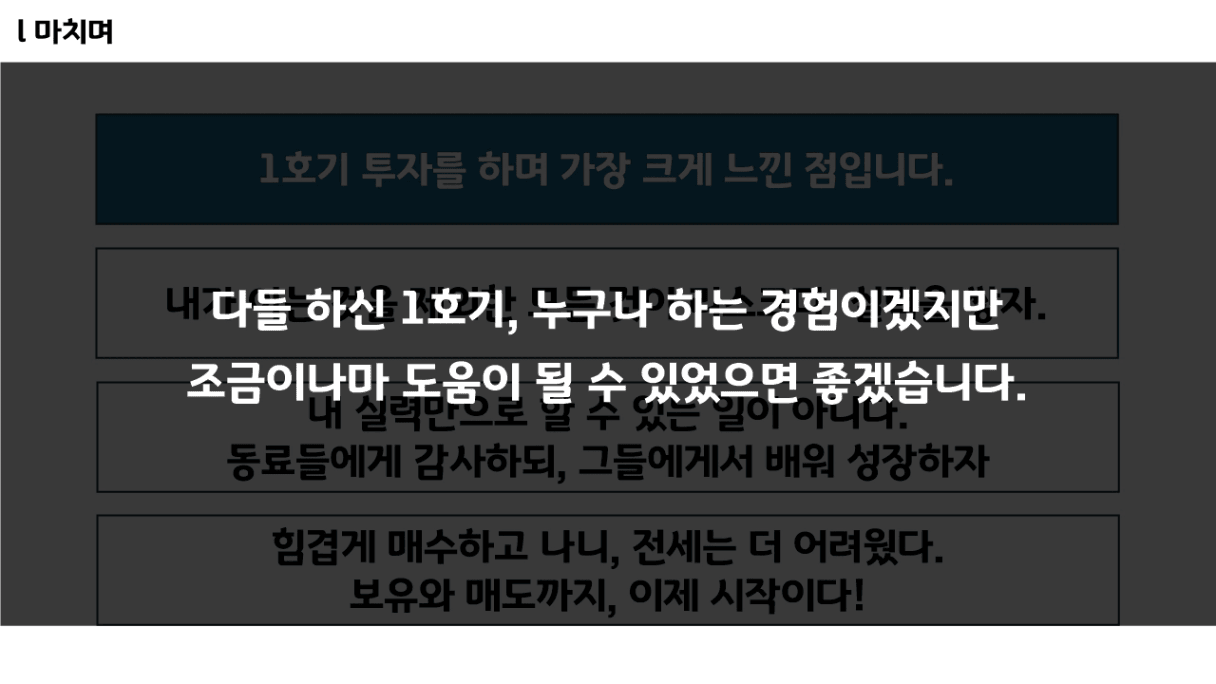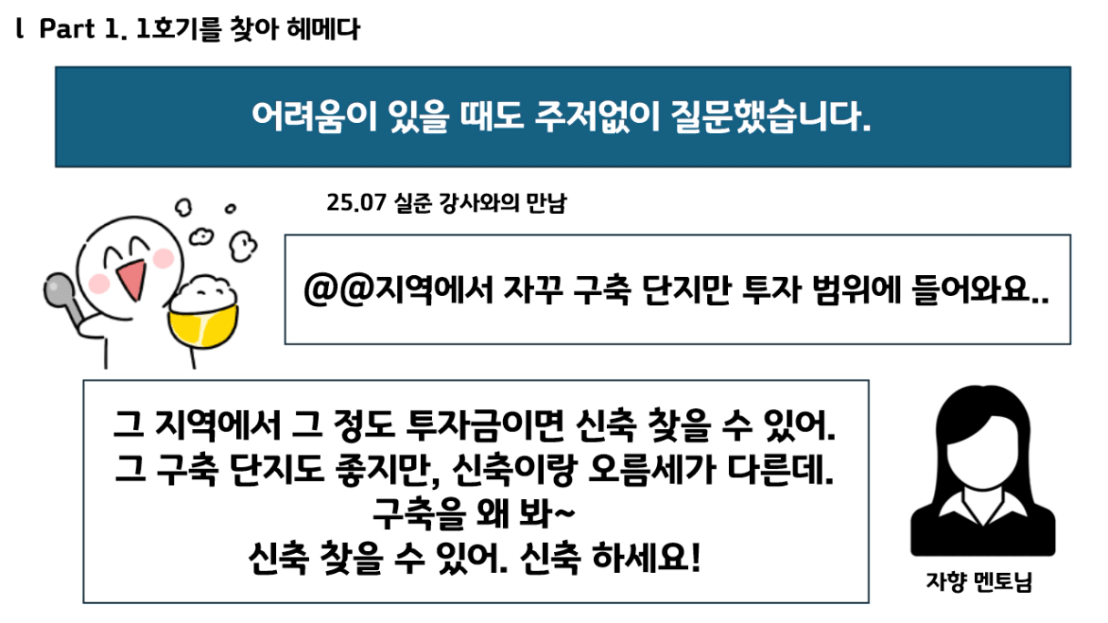 지투 최종 오프모임, 감사하게도 운조 튜터님께서 1호기 경험담을 발표할 기회를 주셨습니다.