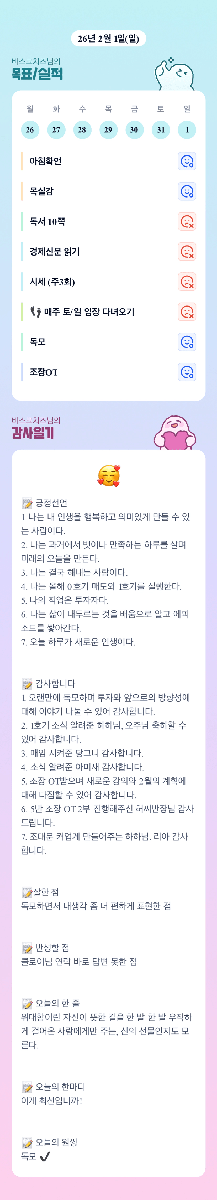 오늘의 한마디 멋지다 일단 조금만 더 끝까지 가보자 끝까지가보고 판단해도 늦지않다😌