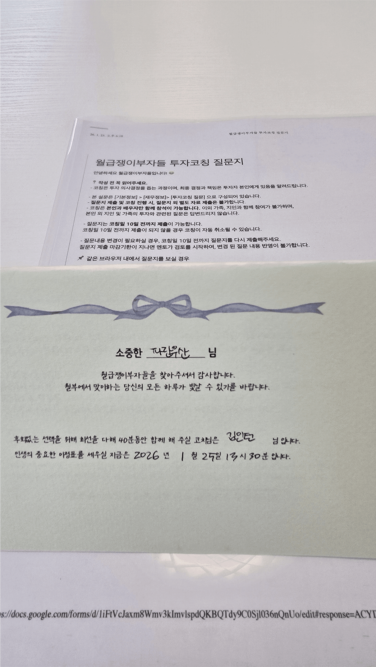 25년 7월 서울 1호기 투자후 다음스텝을 어떻게 가져갈지 고민되어 투자코칭을 신청해서 다녀왔습니다.