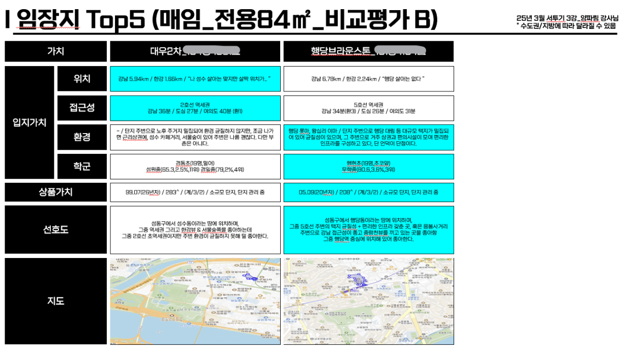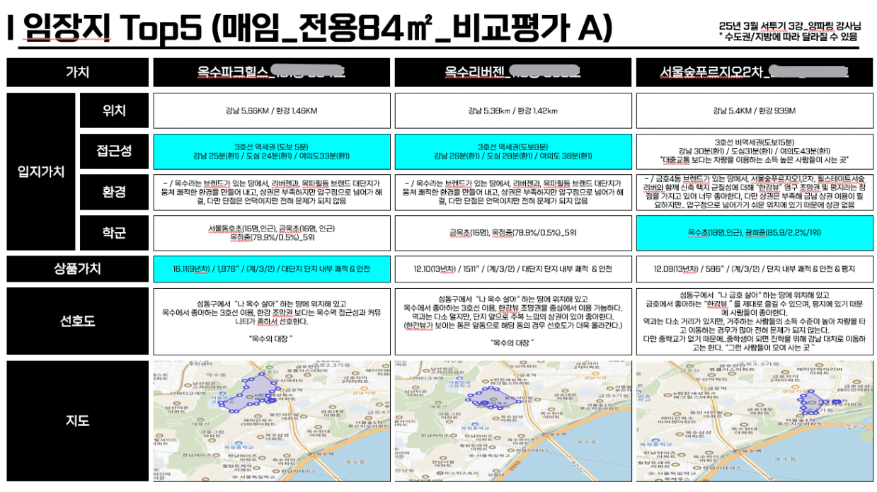 하지만 중요 입지 요소와 + 선호도(킬링 포인트)를 비교해 보았을 때