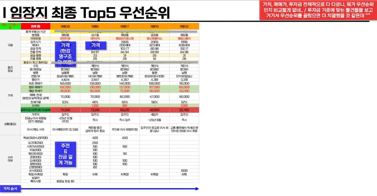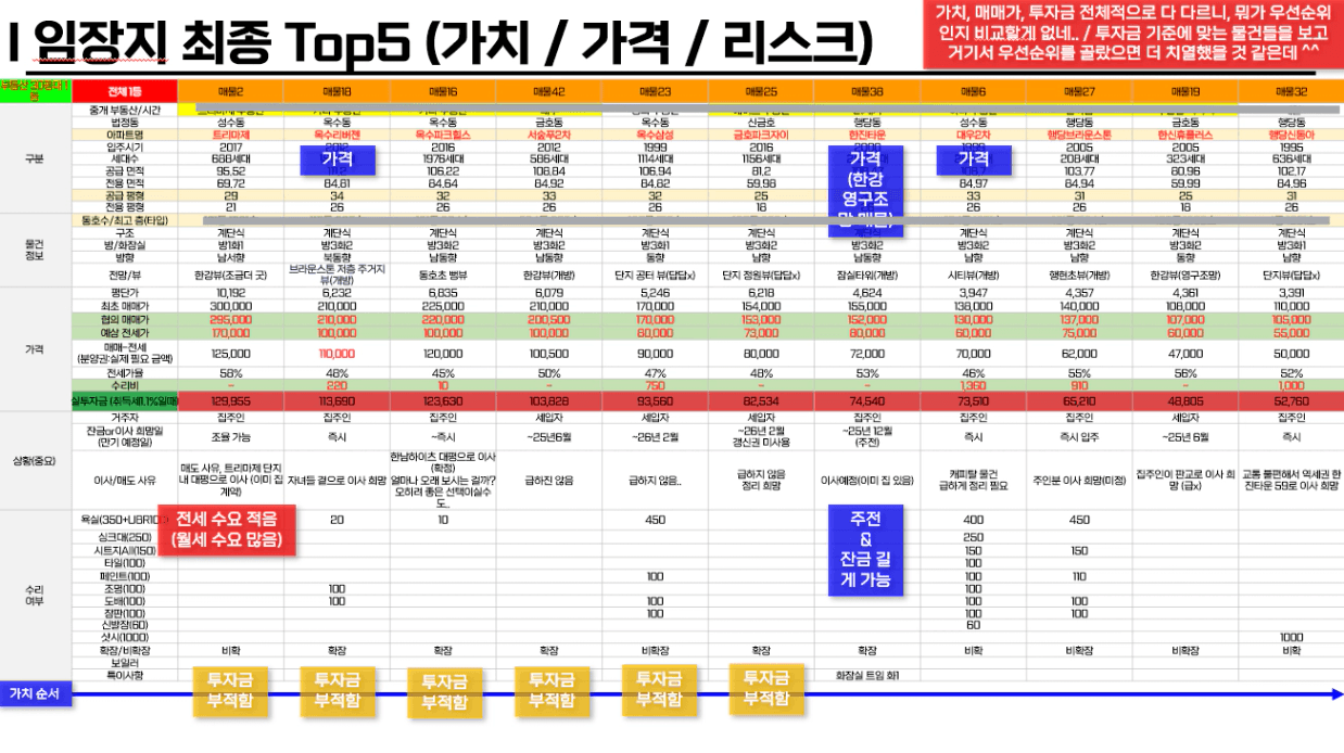 그 결과 매매가,투자금, 가치가 전체적으로 달라