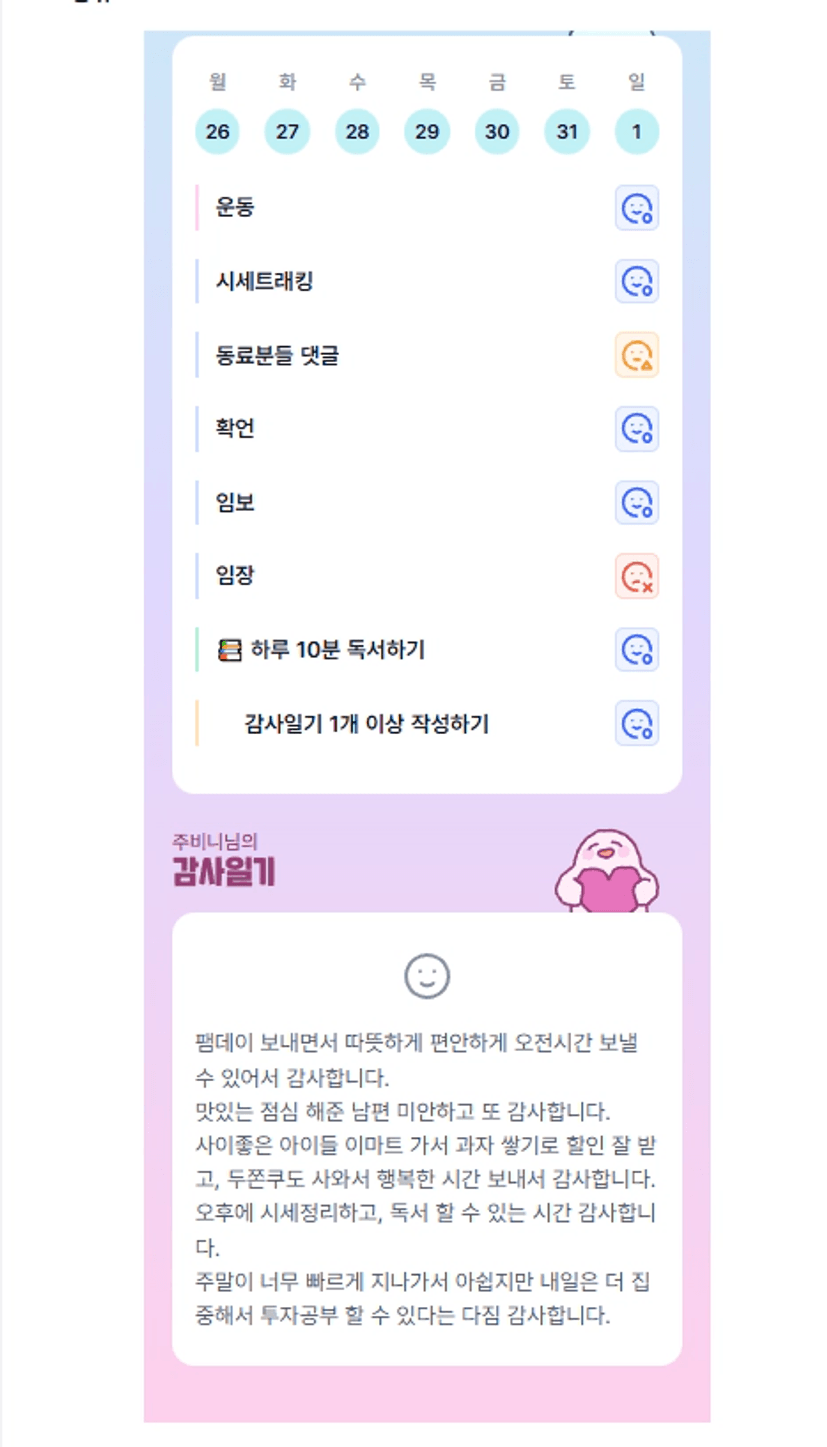 과자쌓기 할일은 뭔가요? 매임에 투자공부까지 주말에도 고생많으셨습니다!!