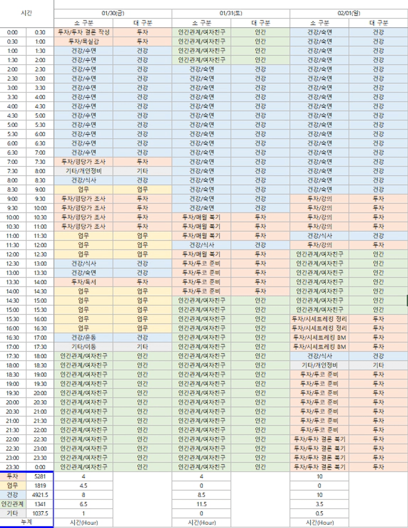 🌻1/30~2/1 시간 가계부