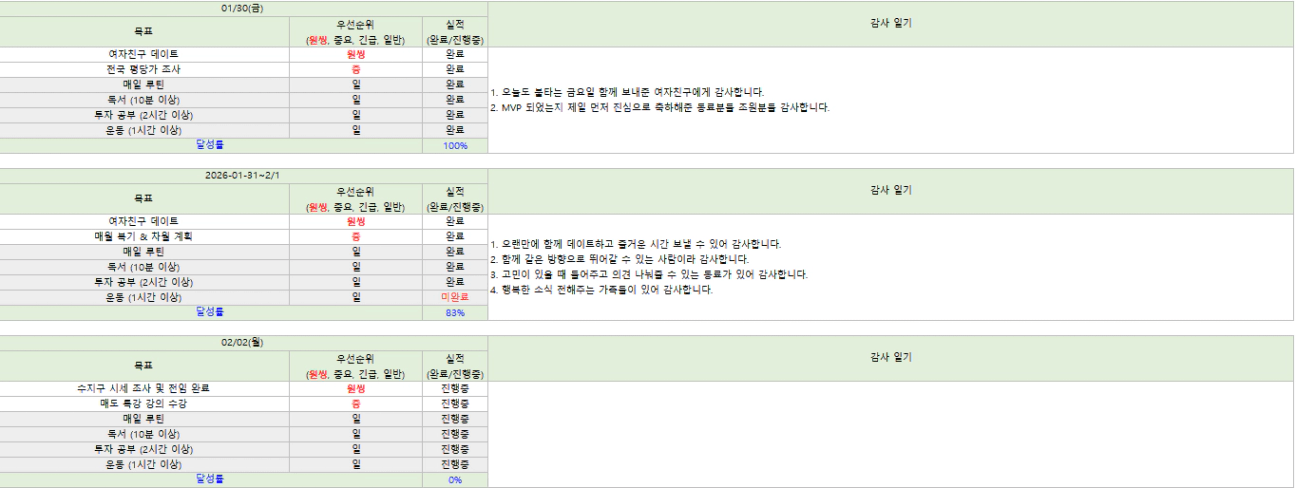 🌻2/2 목표, 1/30~2/1 실적 & 감사일기
